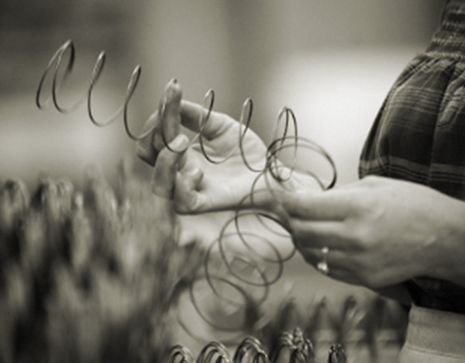 圍在彈簧邊上的扁鋼邊框——既可以保證彈簧不移位,也保證了床墊的尺寸,長久使用不變形。